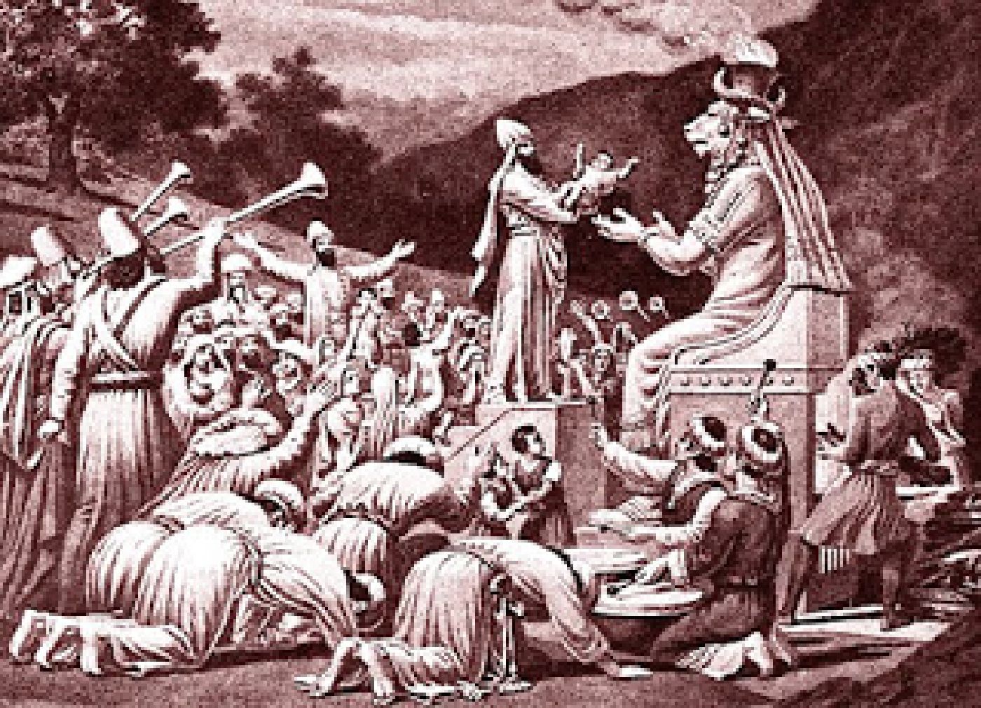 Иезекииль 9:4-6 И сказал ему Господь: пройди посреди города, посреди Иерусалима, и на челах людей скорбящих, воздыхающих о всех мерзостях, совершающихся среди него, сделай знак. (5) А тем сказал в слух мой: идите за ним по городу и поражайте; пусть не жалеет око ваше, и не щадите; (6) старика, юношу и девицу, и младенца и жен бейте до смерти, но не троньте ни одного человека, на котором знак, и начните от святилища Моего. И начали они с тех старейшин, которые были перед домом.